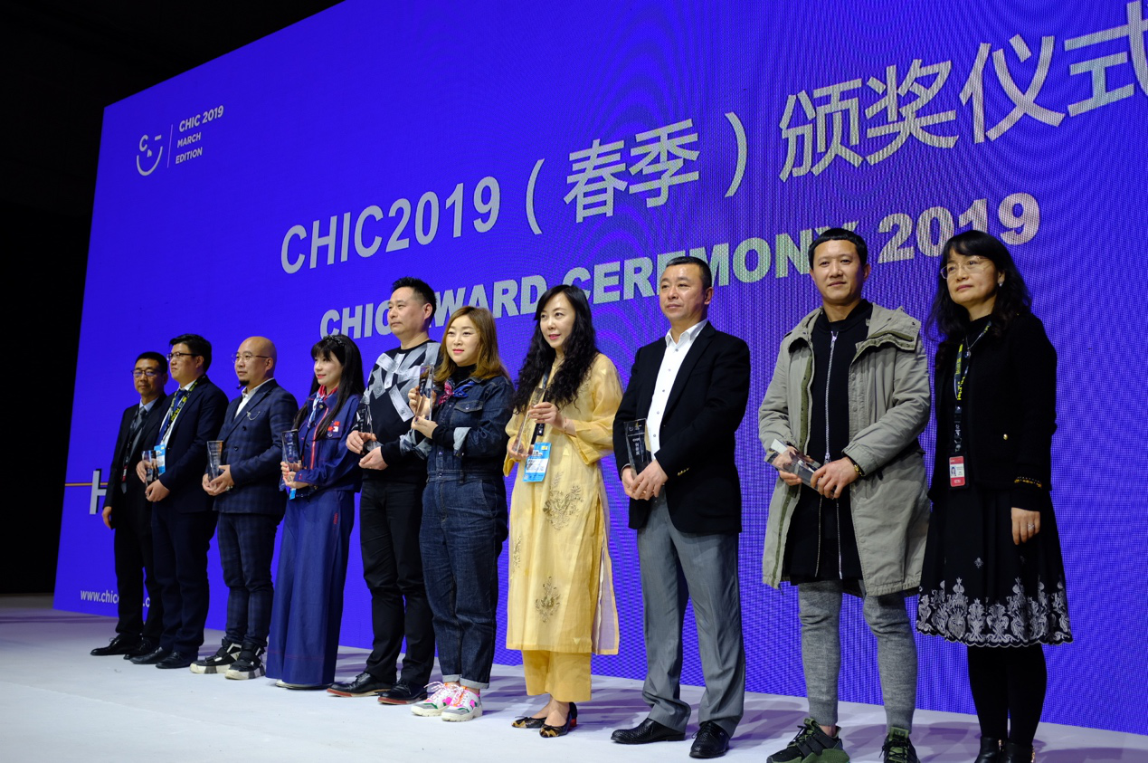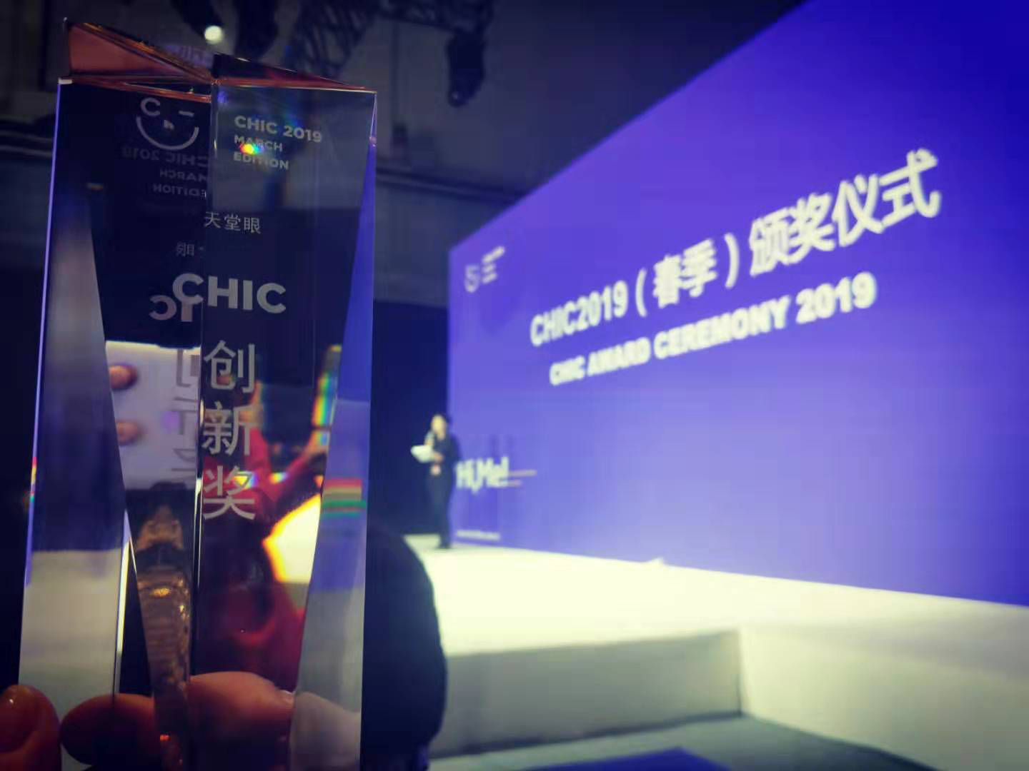 SWARKA天堂眼荣获2019CHIC年度创新奖,品牌创始人胡冰女士上台领奖。