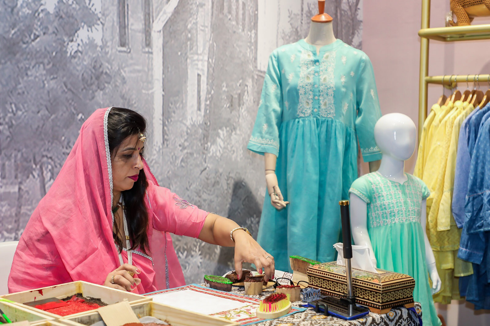 在本次展会上,SWARKA天堂眼不仅展出了原创的手工艺服装、工艺品和围巾丝巾等产品,还特别邀请到知名的手工艺匠人,现场为来宾制作手工艺品。每一件饱含匠人温度的作品,透过斑斓色彩和精湛工艺,无不向世人传递着手工艺文化的独特魅力。所有来宾们都有机会参与传统手工艺的制作,SWARKA天堂眼也贴心地为来宾准备了一份独具匠心的礼物。